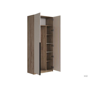 - Распашной шкаф Бохо позволит создать аккуратную систему хранения предметов гардероба. Внутреннее пространство представлено отделением со штангой, где удобно расположить платья, костюмы и пиджаки. На полках найдется место для футболок, джинсов и текстиля. Лаконичная фурнитура в виде черной матовой ручки гармонично адаптируется под современный интерьер. Характеристики: Материал: ЛДСП 16 мм. Материал ручки: пластик. Тип штанги: продольная. Требуется крепление к стене. Крепежи входят в комплект.