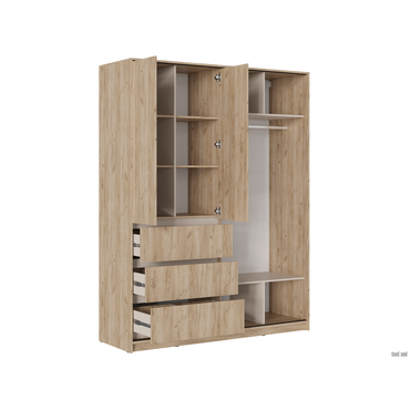 - Шкаф-купе Бохо позволит создать продуманную систему хранения одежды в современном интерьере. Внутреннее наполнение включает два отделения с полками для сложенных вещей и штангу для вешалок. Антресольную часть можно использовать для головных уборов. Раздвижные двери помогают сэкономить место в комнате. Характеристики: Материал: ЛДСП 16 мм. Материал ручки: металл. Тип направляющих: шариковые. Тип штанги: продольная. Требуется крепление к стене. Крепежи входят в комплект. Ориентация сборки: только так, как показано на изображении. Максимальная нагрузка на ящик: 20 кг. Максимальная нагрузка на полку: 3 кг. Шкаф требует много места для сборки. Конструкция шкафа предполагает сборку в горизонтальном положении. Для того, чтобы шкаф можно было поднять из положения «лежа», высота потолков должна быть больше высоты шкафа не менее, чем на 10 см. Сборка шкафа в вертикальном положении гораздо более трудоемкая и часто приводит к повреждению деталей.