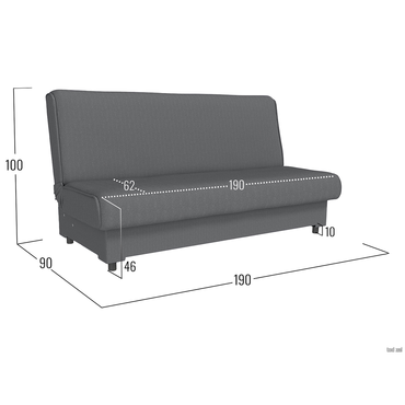 - Прямой диван Конти идеален для малогабаритной квартиры. Компактный размер и отсутствие подлокотников позволяют расположить модель даже в очень в ограниченном пространстве. Надежный механизм трансформации быстро превращает диван в ровное место для сна. В основании предусмотрен бельевой ящик — актуальное дополнение для хранения в небольшой комнате. Характеристики: Размер спального места: 120 х 190 см. Размер спального места в сложенном виде: 60 х 190 см. Механизм трансформации: книжка. Нагрузка на одно спальное место: 90 кг. Нагрузка на одно посадочное место: 70 кг. Посадочное место (ВхГ): 46 х 62 см. Высота спинки от посадочного места: 54 см. Размер ящика для белья (ВхШ): 75 х 180 см. Общие габариты дивана в разложенном виде (ВхШхГ): 45 х 190 х 120 см. Материал основания: массив, фанера, ДСП, ХДФ. Наполнитель: независимый пружинный блок 8 см, войлок, ортопена 2 см. Тип каркаса: деревянный. Материал ножек: пластик. Высота ножек: 10 см. Преимущества: механизм трансформации «Книжка» — чтобы разложить диван, нужно приподнять сиденье до характерного щелчка (при этом спинка принимает горизонтальное положение) и опустить обратно. Для трансформации необходимо небольшое пространство между спинкой и стеной. Подходит для ежедневной эксплуатации; высокие ножки — упрощают уборку под диваном и делают конструкцию визуально легче; независимый пружинный блок — каждая пружина находится в отдельном тканевом чехле и не связана с другими. Это обеспечивает точечное распределение нагрузки и оптимальную поддержку каждой части тела. Подходит для ежедневного сна; антикоготь — гладкая текстура ткани более устойчива к появлению зацепок, в отличие от материалов с выраженным плетением. Кроме того, она легко чистится от шерсти; двойной ящик для хранения — в коробе с перегородкой удобно хранить постельные принадлежности, сезонные вещи и другие предметы отдельно друг от друга.