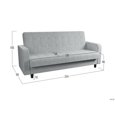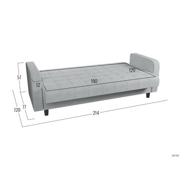 - Прямой диван Грант подходит для любого интерьера. Декоративная строчка подчеркивает простой силуэт модели, а удобные подлокотники создают дополнительный комфорт. Диван легко раскладывается, образуя полноценное место для сна. В процессе трансформации не портится напольное покрытие, что важно для повседневного использования. Бельевой ящик с двумя секциями — практичное дополнение модели. Характеристики: Размер спального места: 120 х 190 см. Размер спального места в сложенном виде: 60 х 190 см. Механизм трансформации: книжка. Нагрузка на одно спальное место: 90 кг. Нагрузка на одно посадочное место: 70 кг. Посадочное место (ВхГ): 46 х 58 см. Высота спинки от посадочного места: 60 см. Размер подлокотников (ВхШхГ): 57 х 12 х 77 см. Размер ящика для белья (ВхШ): 75 х 186 х 163,2 см. Общие габариты дивана в разложенном виде (ВхШхГ): 57 х 214 х 120 см. Материал основания: массив, фанера, ДСП, ХДФ. Наполнитель: независимый пружинный блок 8 см, войлок, ортопена 2 см. Приспинные подушек: ортопена. Тип каркаса: деревянный. Материал ножек: пластик. Высота ножек: 10 см. Преимущества: механизм трансформации «Книжка» — чтобы разложить диван, нужно приподнять сиденье до характерного щелчка (при этом спинка принимает горизонтальное положение) и опустить обратно. Для трансформации необходимо небольшое пространство между спинкой и стеной. Подходит для ежедневной эксплуатации; независимый пружинный блок — каждая пружина находится в отдельном тканевом чехле и не связана с другими. Это обеспечивает точечное распределение нагрузки и оптимальную поддержку каждой части тела. Подходит для ежедневного сна; антикоготь — гладкая текстура ткани более устойчива к появлению зацепок, в отличие от материалов с выраженным плетением. Кроме того, она легко чистится от шерсти; двойной ящик для хранения — в коробе с перегородкой удобно хранить постельные принадлежности, сезонные вещи и другие предметы отдельно друг от друга.