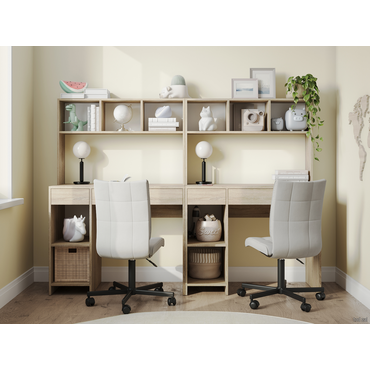 - Письменный стол Элис поможет создать компактное рабочее или учебное пространство в небольшой комнате. Выдвижные ящики и открытые ниши позволяют хранить в быстром доступе документы и канцелярские принадлежности. Надстройка над столешницей не загромождает место и подходит для учебников, игрушек или предметов декора. Характеристики: Материал: ЛДСП 16 мм. Тип направляющих: роликовые. Ориентация сборки: только так, как представлено на изображении. Требуется крепление к стене. Фурнитура не входит в комплект. Максимальная нагрузка на столешницу: 15 кг. Максимальная нагрузка на крышку надстройки и полку тумбы: 5 кг. Максимальная нагрузка на полку надстройки и ящик: 3 кг. Преимущества: надстройка — открытые полки создают дополнительные места для хранения. Все необходимые принадлежности находятся в быстром доступе, при этом не занимают места на столешнице; универсальная сборка — расположение тумбы может быть с любой стороны столешницы. Это делает стол одинаково удобным для правшей и для левшей, а также позволяет адаптировать его для разных планировок; компактные размеры — стол занимает мало места, поэтому его легко установить даже в ограниченном пространстве. Идеальный вариант для небольшой комнаты или квартиры-студии; ЛДСП — ламинированная древесно-стружечная плита — недорогой материал, который выпускается в самых разных текстурах и оттенках. Меламиновая пленка защищает от вредных испарений и придает мебели эстетичный вид.