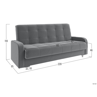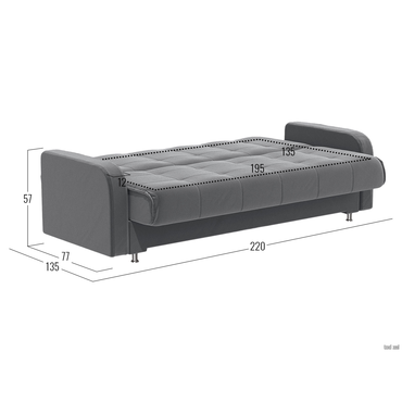 - Прямой диван Норман украсит интерьер гостиной, спальни или детской. Дизайн с симметричной прострочкой подчеркивает лаконичный силуэт модели и адаптируется под разные интерьерные стили. Благодаря простому механизму диван легко раскладывается и образует ровное спальное место. Бельевой короб подходит для хранения различных принадлежностей. Характеристики: Размер спального места: 135 х 195 см. Размер спального места в сложенном виде: 62 х 195 см. Механизм трансформации: книжка. Нагрузка на одно спальное место: 90 кг. Нагрузка на одно посадочное место: 70 кг. Посадочное место (ВхГ): 46 х 62 см. Размер подлокотников (ВхШ): 57 х 77 см. Размер ящика: 75,5 х 190 см. Общие габариты в разложенном виде (ВхШхГ): 46 х 220 х 135 см. Материал основания: массив, фанера, ДСП, ХДФ. Наполнитель дивана: независимый пружинный блок 8 см, войлок, ортопена 2 см. Тип каркаса: деревянный. Материал ножек: хром / пластик. Высота ножек: 10 см. Преимущества: механизм трансформации «Книжка» — чтобы разложить диван, нужно приподнять сиденье до характерного щелчка (при этом спинка принимает горизонтальное положение) и опустить обратно. Для трансформации необходимо небольшое пространство между спинкой и стеной. Подходит для ежедневной эксплуатации; независимый пружинный блок — каждая пружина находится в отдельном тканевом чехле и не связана с другими. Это обеспечивает точечное распределение нагрузки и оптимальную поддержку каждой части тела. Подходит для ежедневного сна; антикоготь — гладкая текстура ткани более устойчива к появлению зацепок, в отличие от материалов с выраженным плетением. Кроме того, она легко чистится от шерсти; ящик для хранения — в просторном коробе уместится все: от постельного белья и объемных подушек до сезонных вещей и коробок с обувью.; высокие ножки — ножки упрощают уборку под диваном и делают конструкцию визуально легче.