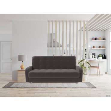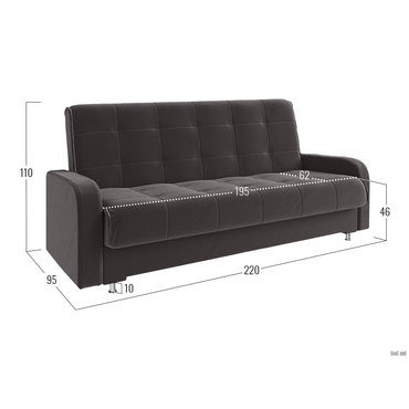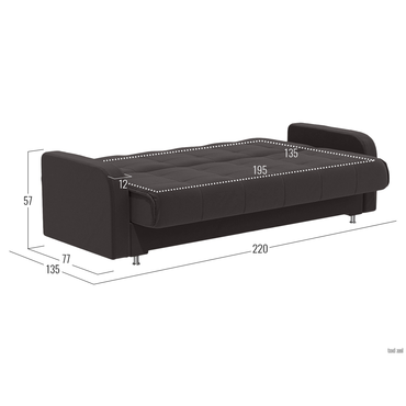 - Прямой диван Норман украсит интерьер гостиной, спальни или детской. Дизайн с симметричной прострочкой подчеркивает лаконичный силуэт модели и адаптируется под разные интерьерные стили. Благодаря простому механизму диван легко раскладывается и образует ровное спальное место. Бельевой короб подходит для хранения различных принадлежностей. Характеристики: Размер спального места: 135 х 195 см. Размер спального места в сложенном виде: 62 х 195 см. Механизм трансформации: книжка. Нагрузка на одно спальное место: 90 кг. Нагрузка на одно посадочное место: 70 кг. Посадочное место (ВхГ): 46 х 62 см. Размер подлокотников (ВхШ): 57 х 77 см. Размер ящика: 75,5 х 190 см. Общие габариты в разложенном виде (ВхШхГ): 46 х 220 х 135 см. Материал основания: массив, фанера, ДСП, ХДФ. Наполнитель дивана: независимый пружинный блок 8 см, войлок, ортопена 2 см. Тип каркаса: деревянный. Материал ножек: хром / пластик. Высота ножек: 10 см. Преимущества: механизм трансформации «Книжка» — чтобы разложить диван, нужно приподнять сиденье до характерного щелчка (при этом спинка принимает горизонтальное положение) и опустить обратно. Для трансформации необходимо небольшое пространство между спинкой и стеной. Подходит для ежедневной эксплуатации; независимый пружинный блок — каждая пружина находится в отдельном тканевом чехле и не связана с другими. Это обеспечивает точечное распределение нагрузки и оптимальную поддержку каждой части тела. Подходит для ежедневного сна; антикоготь — гладкая текстура ткани более устойчива к появлению зацепок, в отличие от материалов с выраженным плетением. Кроме того, она легко чистится от шерсти; ящик для хранения — в просторном коробе уместится все: от постельного белья и объемных подушек до сезонных вещей и коробок с обувью.; высокие ножки — ножки упрощают уборку под диваном и делают конструкцию визуально легче.