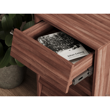 - Комод Степ станет изюминкой интерьера и добавит обстановке функциональности и уюта. Благодаря компактным габаритам модель можно разместить в небольшой комнате. Внутри удобно хранить текстиль, аксессуары и важные мелочи. Фасады расположены под углом, что позволяет легко открывать ящики. Характеристики: Материал корпуса и фасадов: ЛДСП 16 мм. Материал ножек: металл. Тип направляющих: шариковые полного выдвижения. Максимальная нагрузка на ящик: 5 кг. Высота ножек: 14 см.