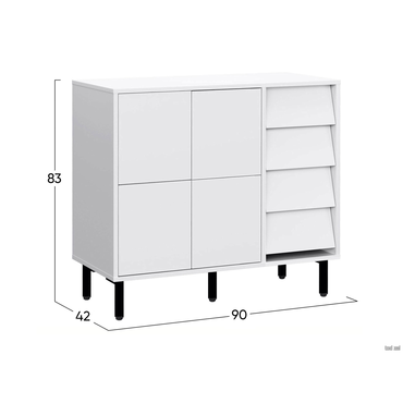 - Комод Степ предоставит достаточно места для хранения одежды, белья и аксессуаров. Комбинированное наполнение с распашными дверцами и выдвижными ящиками поможет удобно распределить всё необходимое. Современный дизайн с высокими ножками и скошенными фасадами гармонично смотрится в разных интерьерах. Характеристики: Материал корпуса и фасадов: ЛДСП 16 мм. Материал ножек: металл. Тип направляющих: шариковые полного выдвижения. Механизм открывания дверок: «push-to-open». Ориентация сборки: только так, как показано на изображении. Максимальная нагрузка на полку и ящик: 5 кг. Высота ножек: 14 см.
