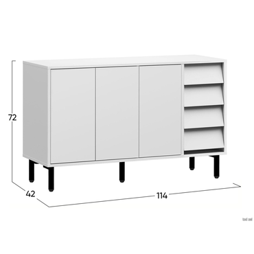 - Комод Степ — элегантная модель для хранения в гостиной, спальне или прихожей. Комбинация распашных секций и выдвижных ящиков позволяет поддерживать порядок в любых вещах. Сочетание лаконичных фасадов и металлических опор гармонично смотрится в современной обстановке и не загромождает интерьер лишними деталями. Характеристики: Материал корпуса и фасадов: ЛДСП 16 мм. Материал ножек: металл. Тип направляющих: шариковые полного выдвижения. Механизм открывания дверок: «push-to-open». Ориентация сборки: только так, как показано на изображении. Максимальная нагрузка на полку и ящик: 5 кг. Высота ножек: 14 см.