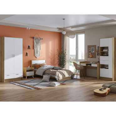 Двуспальная кровать Стендмебель Ирис Белый / Дуб Крафт золотой Белый / Дуб Крафт золотой 90х200 см ,