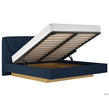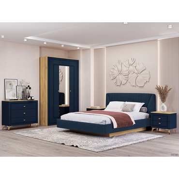 Двуспальная кровать Кураж Вега Сапфир ПМ Дуб Золотистый / Темно-синий, микровелюр 140х200 см ,