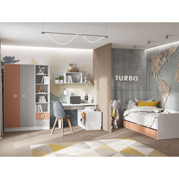 - Детская полка Турбо добавит стильный акцент в оформление пространства над кроватью, письменным столом или комодом. Нейтральный дизайн не отвлекает внимание от предметов, а простая геометрия отлично сочетается с любой обстановкой. Характеристики: Материал: ЛДСП 16 мм.