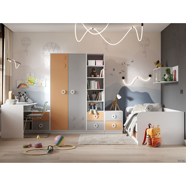 - Детский шкаф Турбо создаст организованную систему хранения всех вещей: от школьной формы до спортивной экипировки. Внутреннее пространство поделено на два равных отделения: со штангой для вешалок и полками для сложенной одежды. Дизайн с объемными элементами и выпуклыми ручками-кнопками создает привлекательные акценты комнаты. Характеристики: Материал корпуса: ЛДСП 16 мм. Материал фасадов: МДФ 16 мм. Материал ручек: пластик. Тип штанги: продольная. Ориентация сборки: только так, как показано на изображении.