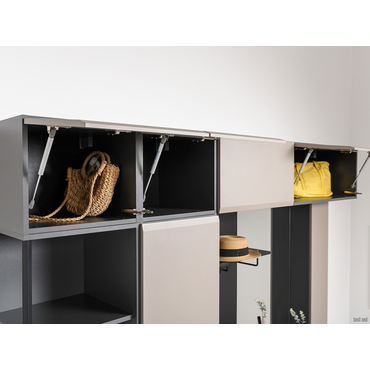 - Навесной шкаф Сидней — практичная и функциональная модель для гостиной или гардеробной. Внутри удобно хранить одежду и аксессуары, которые могут потребоваться в зависимости от сезона. Откидная дверца обеспечит быстрый доступ к содержимому. Характеристики: Материал корпуса: ЛДСП. Материал фасада: ЛМДФ. Петли с доводчиками. Механизм открывания: «push-to-open». Максимальная нагрузка: 8 кг. Обратите внимание, крепеж в комплект не входит.