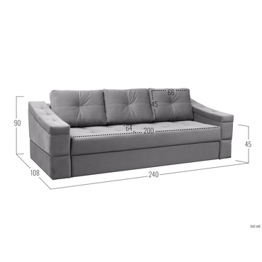 Прямой диван todzal Барти Серый, велюр Серый, велюр ,