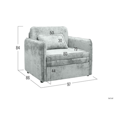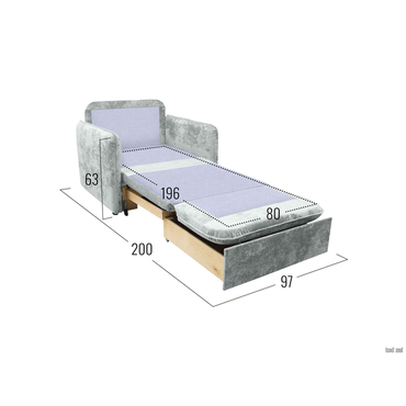 - Кресло-кровать Айден станет функциональным дополнением детской, гостиной или загородного дома. Благодаря простой конструкции модель можно быстро трансформировать в спальное место. Мягкая обивка обеспечивает комфортный отдых и расслабление. В сложенном виде кресло позволяет сэкономить пространство, что очень удобно для небольших комнат. Характеристики: Размер спального места: 80 х 196 см. Механизм трансформации: выкатной. Нагрузка на одно спальное место: 80 кг. Нагрузка на одно посадочное место: 80 кг. Посадочное место (ВхШхГ): 44 х 80 х 79 см. Высота спинки от посадочного места: 43 см. Декоративная подушка (ВхШхГ): 30 х 50 х 10 см. Размер подлокотников (ВхШ): 63 х 86 см. Габариты ящика для белья (ВхШхГ): 45 х 73 х 78 см. Размер в разложенном виде (ШхГ): 97 х 200 см. Материал основания: лист ДВП, фанера. Наполнитель: пенополиуретан. Наполнитель подушек: крошка пенополиуретана. Тип каркаса: деревянный. Материал ножек: пластик. Высота ножек: 2 см. Преимущества: механизм трансформации «Выкатной» — в разложенном виде предоставляет ровное спальное место без стыков. В сложенном состоянии не займет много места. Трансформация осуществляется очень легко: нужно полностью выкатить вперед нижнюю часть, на которой находится сложенная вдвое подушка, и откинуть ее на свободное пространство. Подходит для ежедневного использования; анатомическое основание — металлическая рама с гибкими ламелями точечно распределяет нагрузку и усиливает анатомический эффект спального места; антикоготь — гладкая текстура ткани более устойчива к появлению зацепок, в отличие от материалов с выраженным плетением. Кроме того, она легко чистится от шерсти; комфортный сон и защита стены — защищает спящего от соприкосновений с холодной стеной, а настенное покрытие — от потертостей и пятен; подушки под спину — дополнительные подушки позволяют комфортно расположиться на кресле, регулируя глубину посадки; ящик для хранения — в просторном коробе уместится всё: от постельного белья и объемных подушек до сезонных вещей и коробок с обувью.