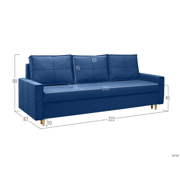 Прямой диван todzal Рэсси Синий, велюр Синий, велюр ,