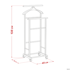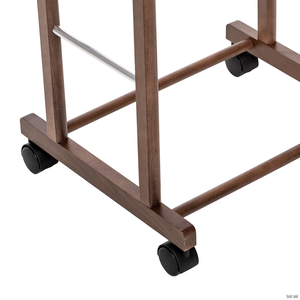 - Изделие изготовлено из массива бука, покрыто высококачественным итальянским шелковисто-матовым лаком. Двойная вешалка предназначена для компактного хранения одежды, занимая минимальное пространство в вашем доме, при этом украшает интерьер. Алюминевые трубки являются элементами крепежа, которые не позволяют стойкам вешалки со временем расшатываться, а так же служат элементом декора. Наличие колес на вешалке, позволяет легко передвигать ее с одного места на другое. В данном изделии сочетаются простота и функциональность, аккуратность и красота.
