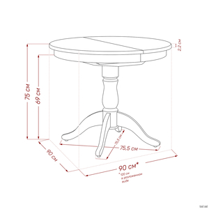 - Круглый стол Луизиана исполнен в классическом стиле. Устойчивая центральная ножка делает силуэт изделия особенно изящным. Столешница выполнена из материала МДФ и покрытая эмалью и матовым лаком. Центральная вставка - бабочка хранится внутри стола. В разложенном виде, длина стола - 1200 мм.