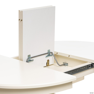 - Круглый стол Луизиана исполнен в классическом стиле. Устойчивая центральная ножка делает силуэт изделия особенно изящным. Столешница выполнена из материала МДФ и покрытая эмалью и матовым лаком. Центральная вставка - бабочка хранится внутри стола. В разложенном виде, длина стола - 1200 мм.
