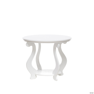 - Круглый изящный столик с удобной полочкой. Форма ножек стола придает ему воздушность. Высококачественный МДФ и отделочный шпон различных цветов делают столик надежным и очень долговечным.
