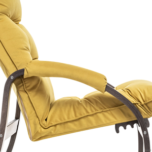 • Мягкое кресло для отдыха дома и на даче Левада сделает комфортным интерьер комнаты модерн или хай-тек. Стильные кресла трансформеры из гнутоклееной коллекции мягкой мебели Leset имеют характерный силуэт, функциональны и компактны, поэтому популярны. Кресло-стул с подлокотниками и уютным сиденьем уместно в спальне, гостиной, прихожей, на балконе, в закрытой дачной беседке. У основания кресло раскладное оснащено механизмом гребенка, за счет чего одним движением спинка переключается в 4 положения. Этим модель напоминает шезлонг, но Левада Leset -полноценное интерьерное кресло для отдыха: современный дизайн, изящный деревянный каркас под итальянским лаком, велюровый чехол, наполнитель из эластичного пенополиуретана. Накладки на подлокотниках снимаются для чистки, приспинная подушка декорирована пуговицами. Эргономичное каркасное кресло раскладушка выдержит до 120 кг. Регулируемое кресло позволит расслабиться как на диване, это чудесный подарок в новую квартиру друзьям.