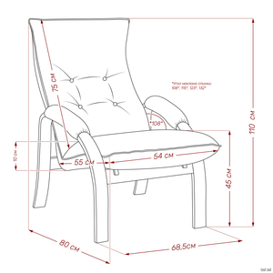 - Мягкое кресло для отдыха дома и на даче Левада сделает комфортным интерьер комнаты модерн или хай-тек. Стильные кресла трансформеры из гнутоклееной коллекции мягкой мебели Leset имеют характерный силуэт, функциональны и компактны, поэтому популярны. Кресло-стул с подлокотниками и уютным сиденьем уместно в спальне, гостиной, прихожей, на балконе, в закрытой дачной беседке. У основания кресло раскладное оснащено механизмом гребенка, за счет чего одним движением спинка переключается в 4 положения. Этим модель напоминает шезлонг, но Левада Leset -полноценное интерьерное кресло для отдыха: современный дизайн, изящный деревянный каркас под итальянским лаком, велюровый чехол, наполнитель из эластичного пенополиуретана. Накладки на подлокотниках снимаются для чистки, приспинная подушка декорирована пуговицами. Эргономичное каркасное кресло раскладушка выдержит до 120 кг. Регулируемое кресло позволит расслабиться как на диване, это чудесный подарок в новую квартиру друзьям.