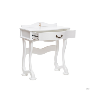 - Изящный стильный туалетный столик. Плавность линий подчеркнут изысканность спальни. Большой выдвижной ящик позволит разместить необходимые предметы и аксессуары. Столик в сочетании с комодом, банкеткой и зеркалом составит отличный гарнитур.