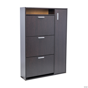 - Много обуви и всегда не знаете куда ее спрятать?! Обувница решит эту проблему. Эта модель оснащена тремя отделениями для хранения обуви. Очень скромные габариты изделия, при этом вместимость обувницы - более 10 пар. Дополнительное место для хранения мелочей и аксессуаров для ухода за обувью.