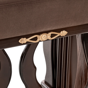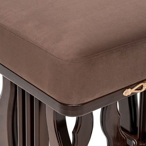 - Банкетка с мягким сидением и изогнутыми опорами необычной формы выполнена из массива дерева. Сиденье обтянуто мебельной тканью высокого качества. Надежные опоры банкетки придают ей устойчивость. Банкетка станет отличным дополнением к туалетному столику «Джульетта».