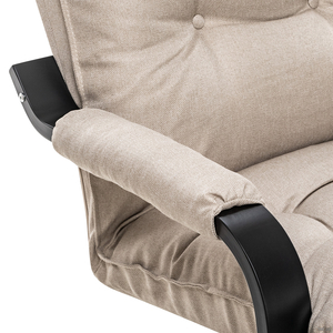 • Популярное кресло-раскладушка Оливер украсит гостиную, спальню, прихожую модерн или хай-тек, и станет фишкой зоны отдыха на даче. Гнутоклееные кресла из линейки мягкой мебели Leset узнаваемы по плавным формам и высокой функциональности. Кресло раскладное можно использовать как в квартире, так и в благоустроенной беседке. Одним движением кресло трансформер переводится в 4 положения спинки. Силуэт раскладного кресла и механизм переключения напоминает шезлонг, за что кресло-стул называют раскладушкой, но качество наполнителя и обивки, премиальное исполнение основания и покрытие каркасной части итальянским лаком, глубина сиденья дарят чудесное расслабление и здоровье позвоночника. Эргономичный каркас выглядит изящно, но выдержит до 120 кг, матрас декорирован обтянутыми материалом пуговицами и боковой окантовкой, накладки на подлокотниках съемные. Трансформеры Оливер с велюровыми подушками доступны в сочетании с опорами венге, слоновая кость, орех.