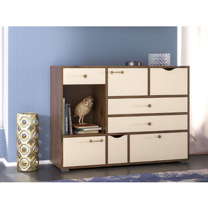 Стильный и вместительный комод Вайс-4 добавит в интерьер функциональности. Модель оснащена четырьмя выдвижными ящиками, четырьмя отделениями за распашными дверками и одной открытой нишей. Комод дополнен оригинальной фурнитурой «под старину».