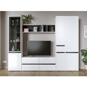 Шкаф 1 дв Сидней 13.202 с ящ, белый/белый глянец/черный