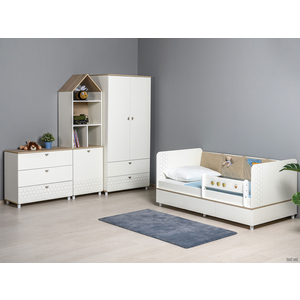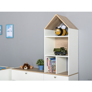 Детский стеллаж Эйп поможет обустроить комнату в скандинавском стиле. Закрытая система хранения представления двумя высокими полками, которые удобны для хранения рюкзака, коробок с обувью и других габаритных вещей. Верхняя часть модели с очаровательным дизайном, напоминающим домик, позволит держать на виду любимые игрушки, книги и аксессуары. Благодаря регулируемым опорам стеллаж можно разместить даже на неровном полу.