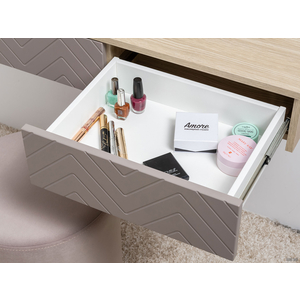 - Туалетный столик Амьен — необходимый элемент для организации персонального уголка для нанесения макияжа и ухода за собой. Подвесная конструкция позволяет сэкономить пространство, что особенно важно в небольшом помещении. Выдвижные ящики удобны для хранения косметики, украшений и других мелочей.