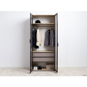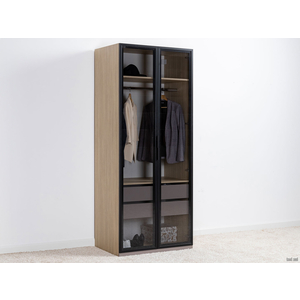 Распашной шкаф Амьен станет стильным акцентом комнаты. Дверцы выполнены из затемненного стекла, что обеспечивает элегантное хранение предметов гардероба и личных вещей. На полках можно разместить футболки, джинсы и аксессуары. Выдвижные ящики подходят для разных мелочей, которые нужно спрятать.