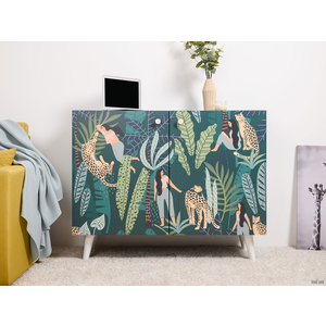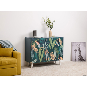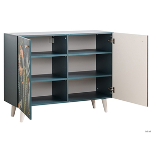 Комод Либера станет ярким украшением современного интерьера. За распашными дверцами находятся вместительные полки, где удобно хранить одежду, книги, постельное белье и аксессуары. Деревянные ножки в основании, расположенные под небольшим наклоном, позволяют легко проводить уборку. Фасады декорированы стильным принтом, который сделает комод эксклюзивным элементом меблировки.