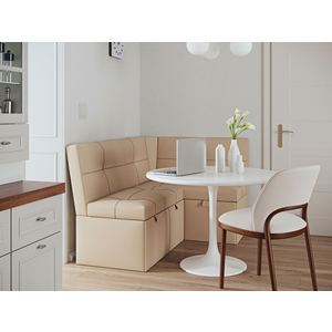 Угловая скамья Квадро — комфортная модель, которая разместит за обеденным столом всех членов семьи. Элегантная обивка с декоративной строчкой подчеркивает лаконичность интерьера. Вместительные ящики обеспечат место для хранения различной утвари.