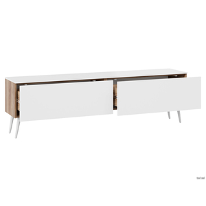 ТВ-тумба Порто — визуально легкая и вместительная модель для оформления современного интерьера. Высокие опоры обеспечивают устойчивость конструкции, а также упрощают уборку пола. В оформлении используется приятное тактильно покрытие «soft-touch», которое подчеркивает благородный оттенок фасада.