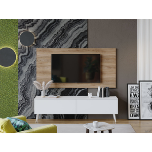 ТВ-тумба Порто широкая с опорами, баттл рок/сантьяго софт/бежевый