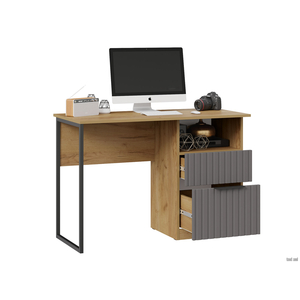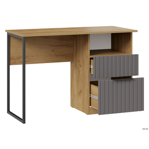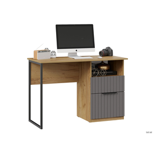 Письменный стол Хилтон привлекает внимание оригинальным сочетанием оттенков и продуманным оснащением. Пара выдвижных ящиков и открытая ниша над ними организуют удобную систему хранения. Столешница достаточно просторная, поэтому с легкостью вмещает все необходимые принадлежности для учебы или работы.