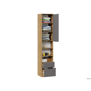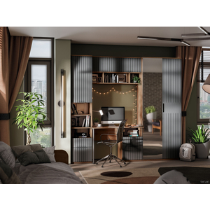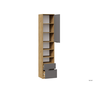 Шкаф Хилтон — компактная модель с комбинированным наполнением и стильным дизайном. Вертикальные линии подчеркивают строгую геометрию фасадов. В оформлении используются разные оттенки и текстуры, которые идеально сочетаются между собой.