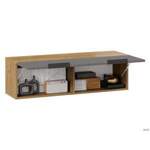 Шкаф навесной Хилтон выполнен в стильном сочетании оттенков и текстур. Вертикальная фрезеровка подчеркивает современный дизайн фасада, а древесный декор делает модель уютнее. Внутри расположено два одинаковых по размеру отделения, в которых удобно хранить небольшие предметы обихода.