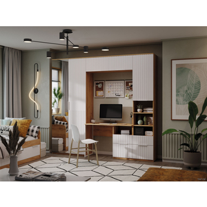 Шкаф навесной Хилтон выполнен в стильном сочетании оттенков и текстур. Вертикальная фрезеровка подчеркивает современный дизайн фасада, а древесный декор делает модель уютнее. Внутри расположено два одинаковых по размеру отделения, в которых удобно хран...