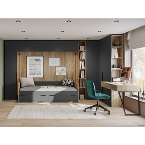 Шкаф навесной со стеллажами Порто СМ-393.21.022, яблоня беллуно/графит софт