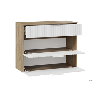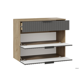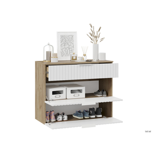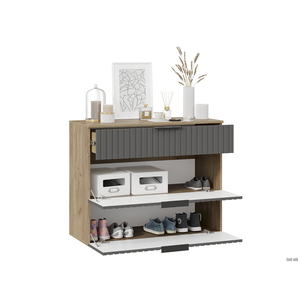 Обувница Хилтон предоставит много места для хранения. Две откидные дверцы плавно открываются и надежно фиксируются в закрытом состоянии. Глубокий выдвижной ящик обеспечивает быстрый доступ к нужным аксессуарам.