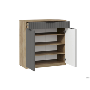 Обувница Хилтон подойдет для большой семьи, так как способна вместить большое количество пар. Выдвижной ящик открывается плавно и бесшумно. Дверцы защищают обувь от пыли и придают модели аккуратный вид.