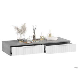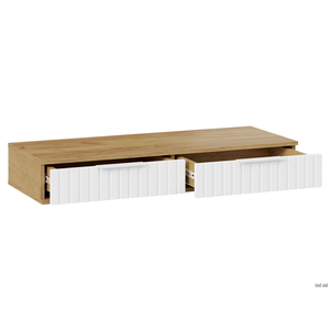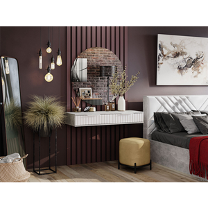 - Туалетный столик Хилтон — стильная подвесная модель с выдвижными ящиками для разных мелочей. Фасады декорированы вертикальной фрезеровкой и дополнены торцевыми ручками в тон. Универсальную конструкцию можно использовать в любых комнатах и для разных целей, например, в качестве консоли в прихожей или письменного стола в детской.