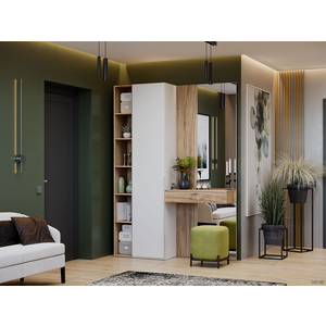 Туалетный столик Порто сочетает стильный дизайн и практичность. Высокое зеркало создает эффект более объемного пространства и помогает оценить внешний вид перед выходом из дома. Древесная текстура гармонично сочетается с разными интерьерами и наполняет входную зону уютом.