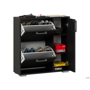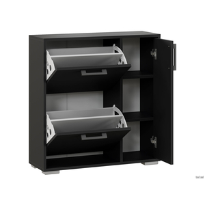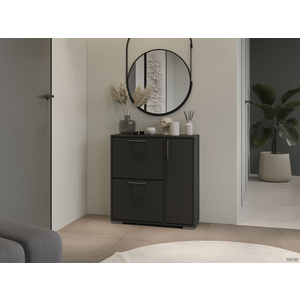 Обувница Эстет решит проблему хранения туфель, ботинок и кроссовок в небольшой прихожей. Внутреннее пространство подходит для различных аксессуаров и мелочей. Благородный дизайн со строгой фурнитурой подчеркивает лаконичность интерьера. На столешнице есть место для предметов декора, ключей и других вещей, которые важно не забыть выходя из дома.