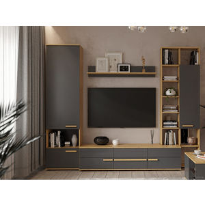 Шкаф 1 дв Краун с открытой полкой, дуб золотистый/графит