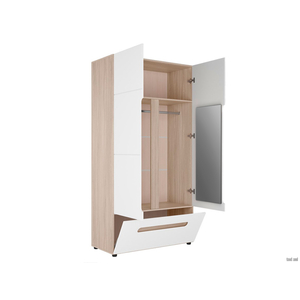 Необычный образ распашного шкафа Палермо С исполнен в стиле минимализм, но при этом обладает незаурядным функционалом. За дверцами расположилась удобная штанга для вешалок с одеждой, а также антресольная полка для головных уборов и сумок. В нижней части имеется ящик, в котором будет удобно хранить как обувь, так и аксессуары.