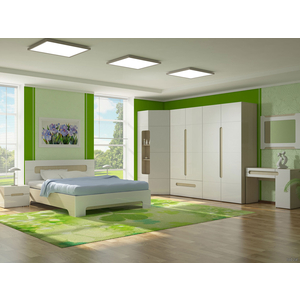 Выемки вместо ручек делают шкаф безопаснее и удобнее в использовании, ведь они позволяют открыть дверцы, не касаясь белого глянца на фасаде. Сочетание цветов визуально делает комнату просторнее и светлее.